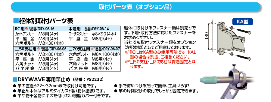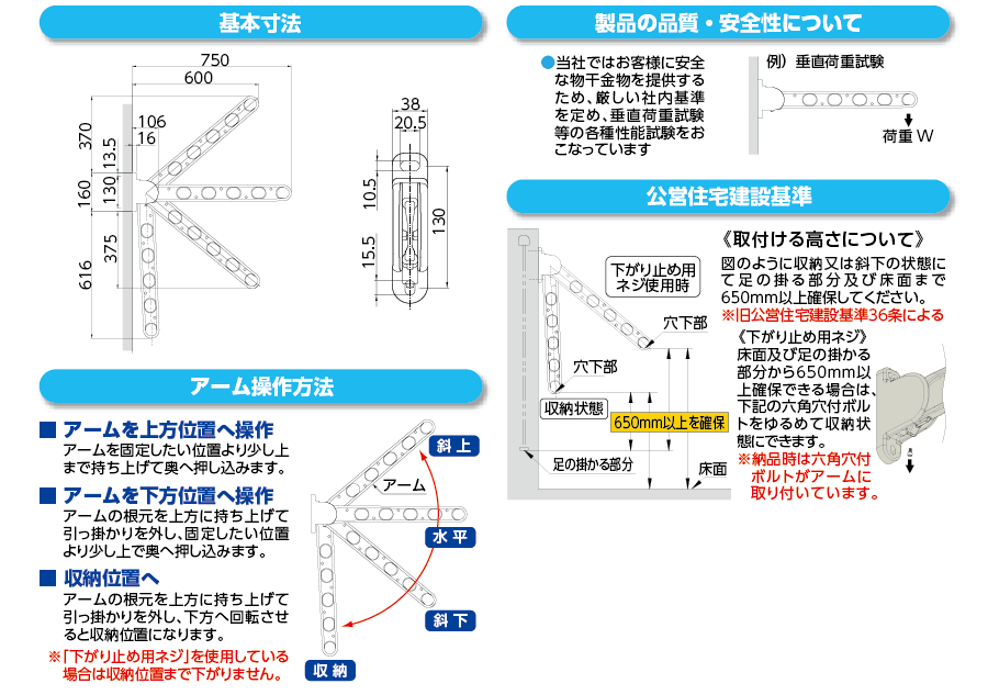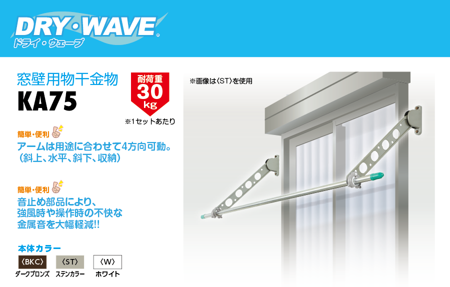 | 製品名: | 窓壁用物干金物 (斜上・水平・斜下・収納4方向) (2本/1組) KA75 |