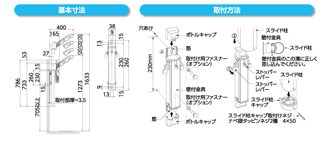 丸みのあるスライド柱とアームを一体化させたデザイン。スライド柱の高さは3段階、間口が小さい時のアームショートタイプ。片手で操作が出来る折りたたみアーム・スライド柱のレバーも左右どちらからでも操作が可能なスタイリッシュなSD35。