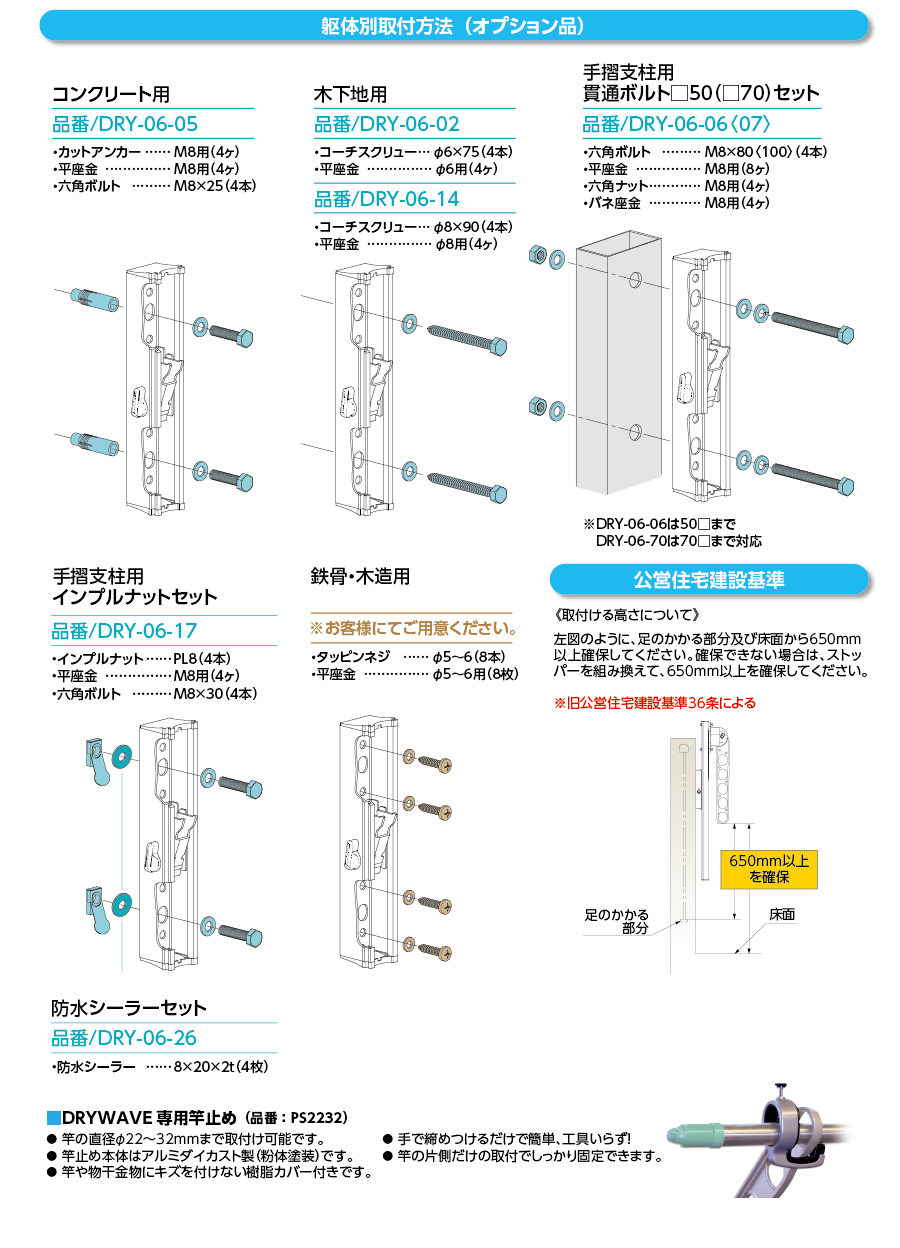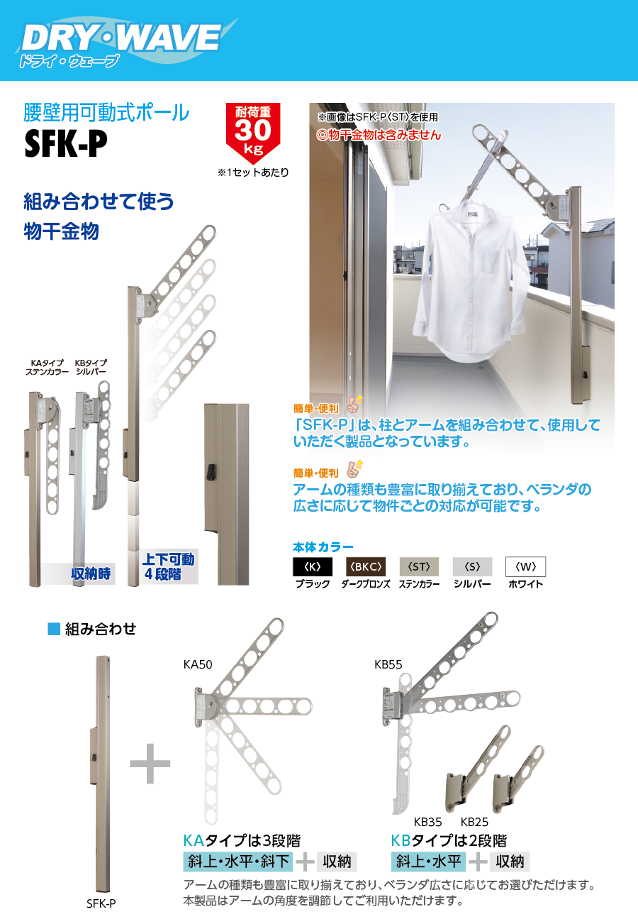 TOP外干し DRY・WAVE(ドライ・ウェーブ)腰壁用物可動式ポール【2本で1組】SFK-P ※物干金物は含みません。 価格: ¥14,641 (税抜 ¥13,310) 販売期間: 数量: 個 カラー在庫購入ブラック在庫あり ダークブロンズ在庫あり ステンカラー在庫あり シルバー在庫あり ホワイト在庫あり カラー在庫購入ブラック在庫あり ダークブロンズ在庫あり ステンカラー在庫あり シルバー在庫あり ホワイト在庫あり 返品についての詳細はこちら レビューはありません 在庫切れの商品につきましては、お問い合わせいただくことで、次回入荷目安や代替の商品をご提案できる場合がございます。 お気軽にご相談ください。お問い合せはコチラ
