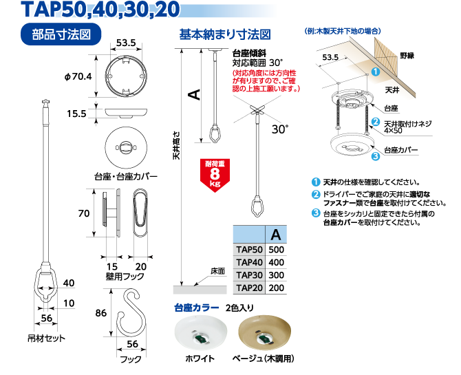 ● 2本/1セット(TAP×2本)で使用する場合も、物干し竿を含めて8kgの耐荷重以内で使用すること。