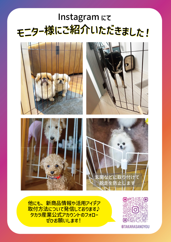 猪突猛進ワンちゃんが看板犬に!?ウェルカムドッグフェンスは扉と扉の枠に取付けて使う小型犬専用の侵入防止柵です。地面にはついていないので掃除もしやすい!玄関から脱走したり・飛び出したりするクセのあるワンちゃんにむけた製品です。
