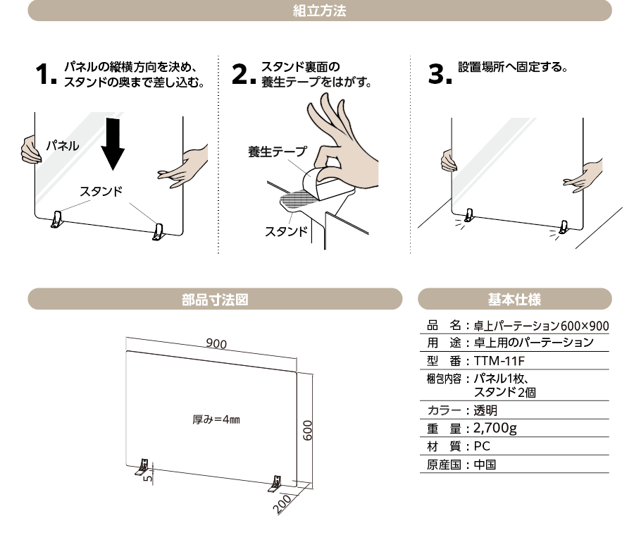 | 製品名: | 卓上パーテーション600×900 |